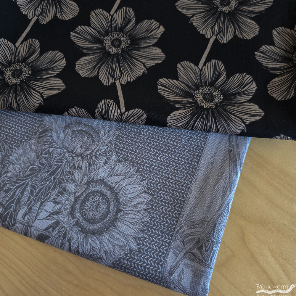Anemone Silvertone is a great, detailed floral with taupe flowers and a black background.