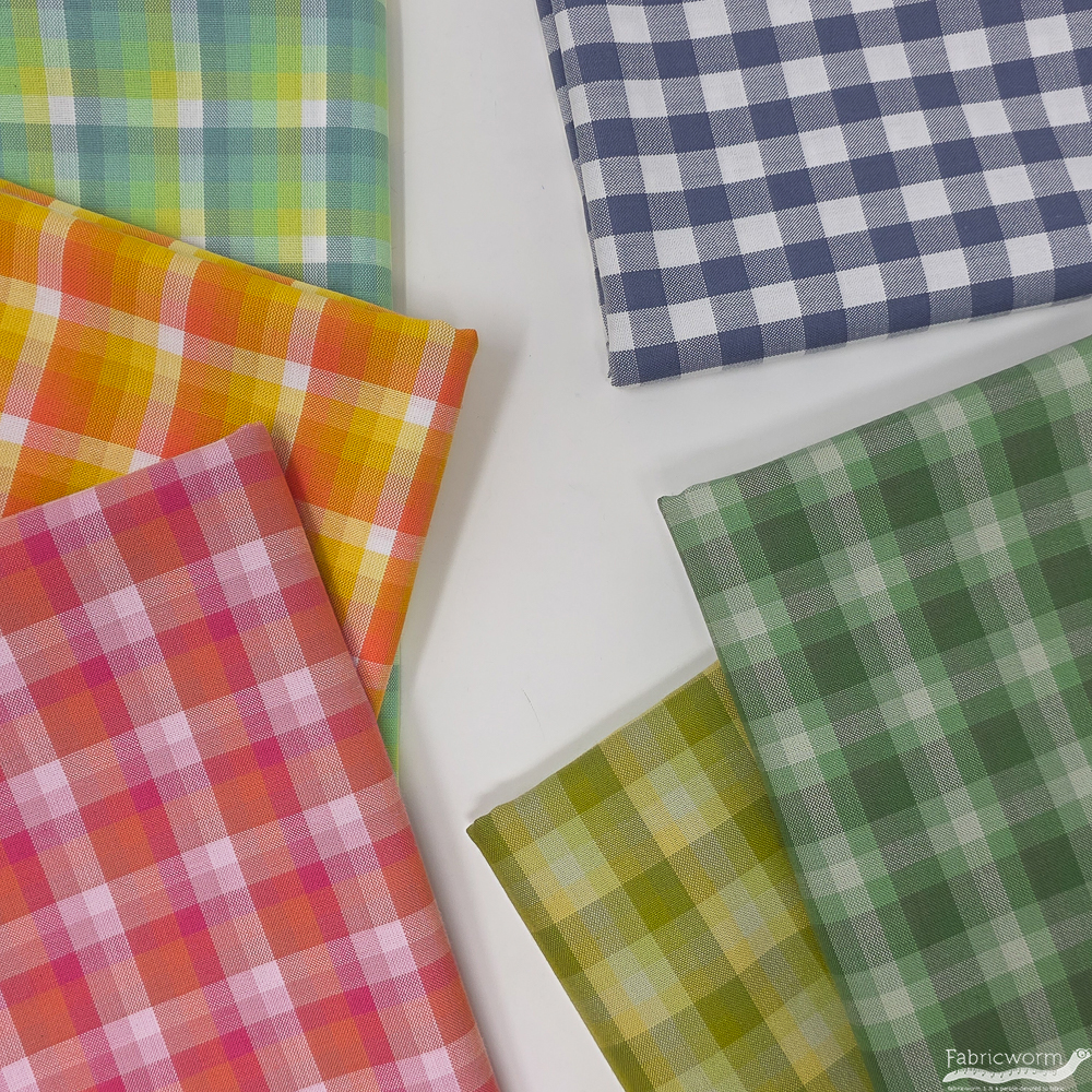 Give your sewing a fresh green boost with Check Check Zucchini. This vibrant yet soft woven check is ideal for quilts, accessories, and lightweight apparel.