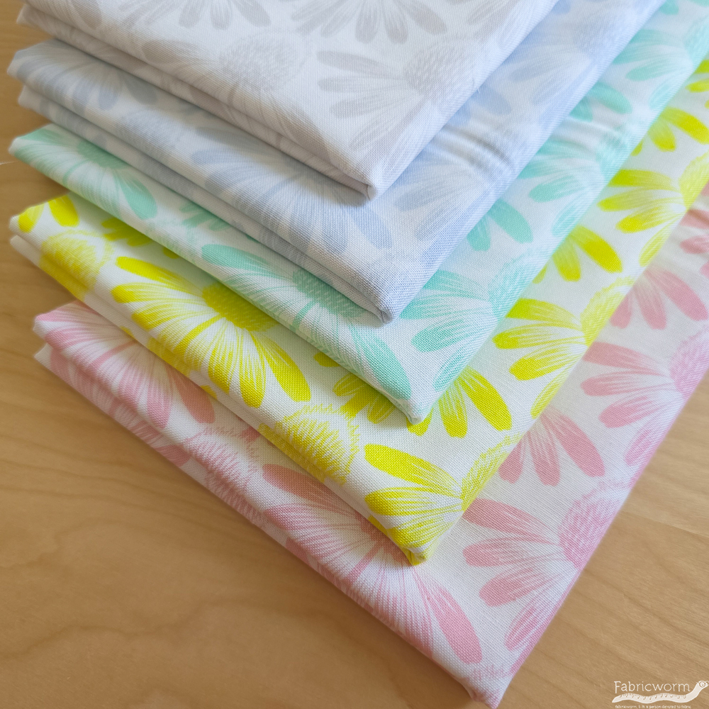 Coneflower Sun is a light, white background with bright yellow colored Echinacea flowers. This is a great fabric for someone wanting a fun floral in a low volume color.