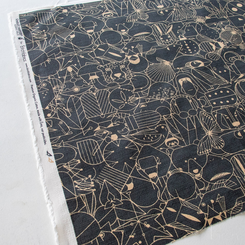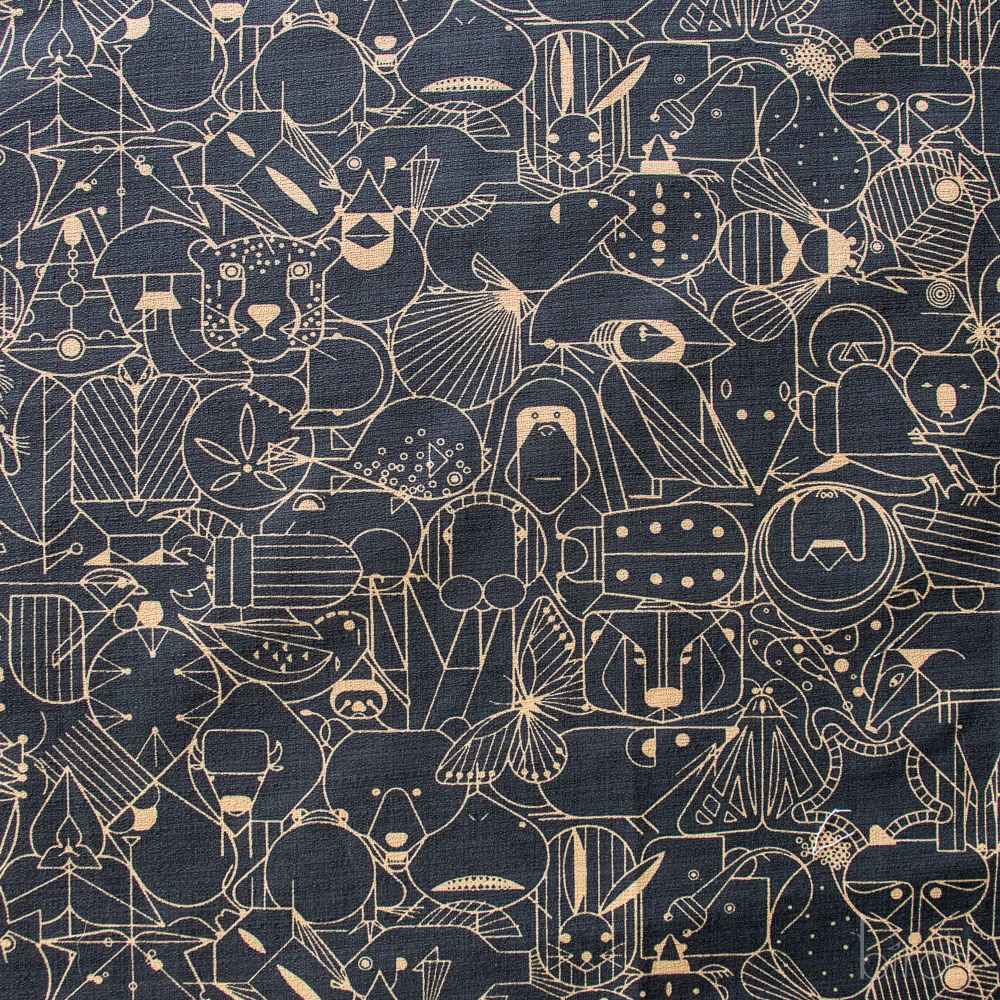 End Papers Basic Cast Iron Barkcloth is a print where the more you look, the more animals you see. This fun fabric is great for many projects that require a slightly structured weight. It is 56″ wide, 215gsm organic cotton barkcloth fabric.