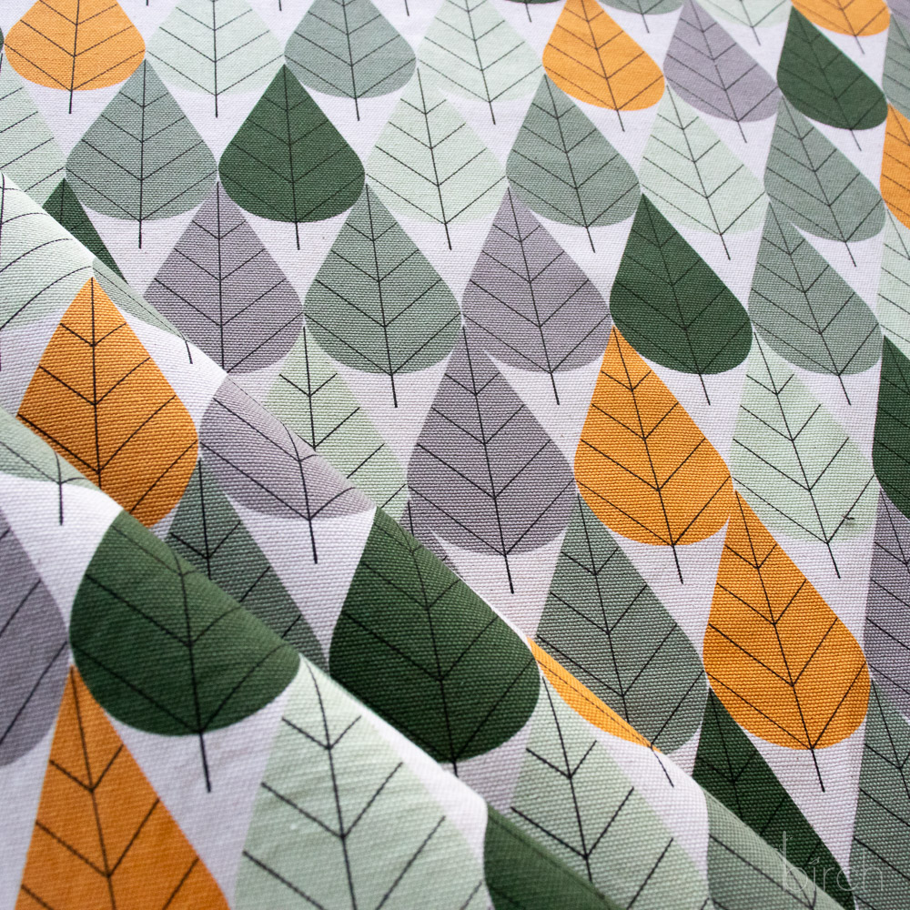 Octoberama Green Canvas is a fun green and neutral color combo of leaves on a cream backdrop. Placemats, pillows, bags, aprons and more are great makes for this fine beautiful canvas. It is 48/50″ wide, 260gsm organic cotton canvas fabric.