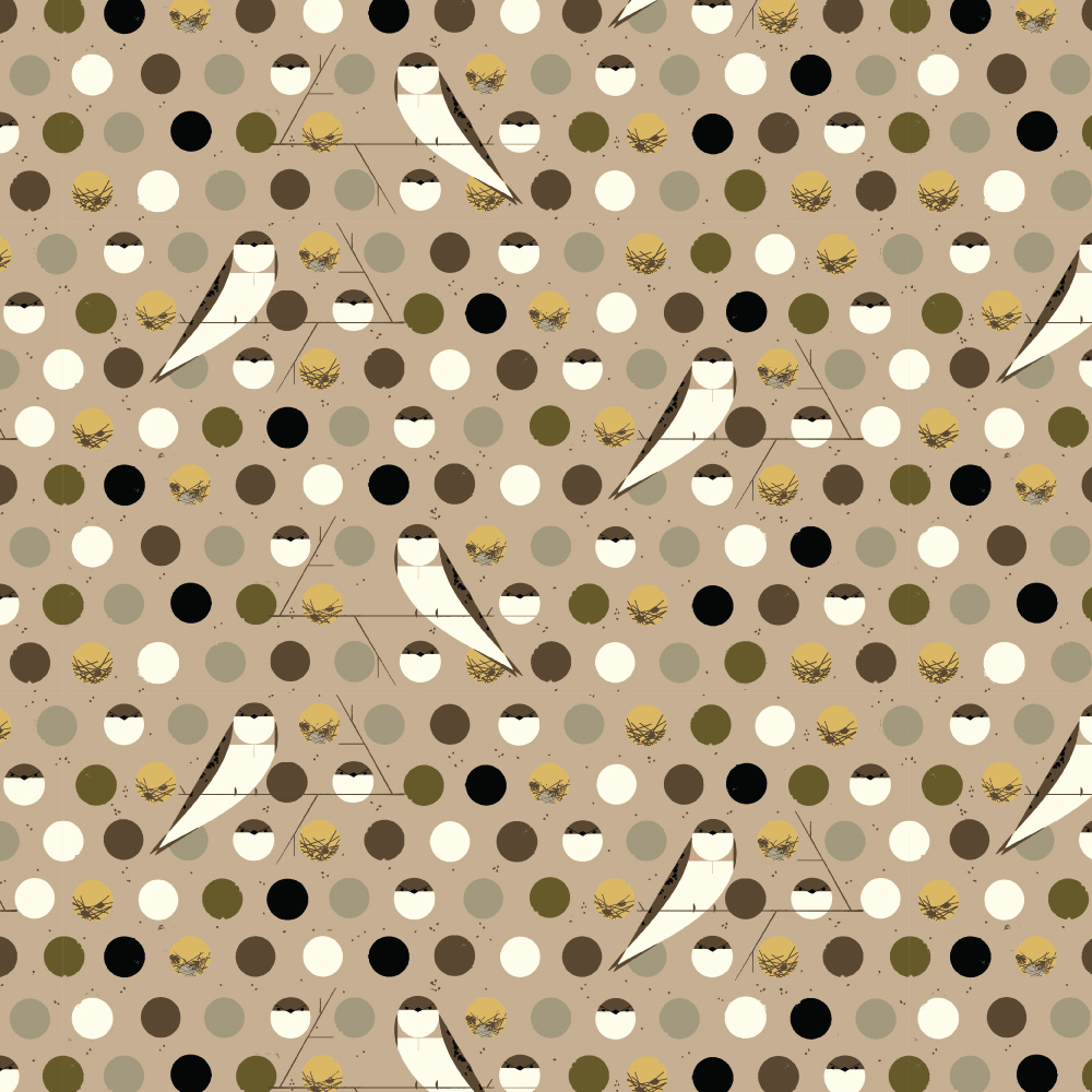 Bank Swallow Brown by Charley Harper features a bird and polka dot motif with rich brown and gold tones. Printed on organic cotton poplin perfect for quilting, apparel and craft projects.