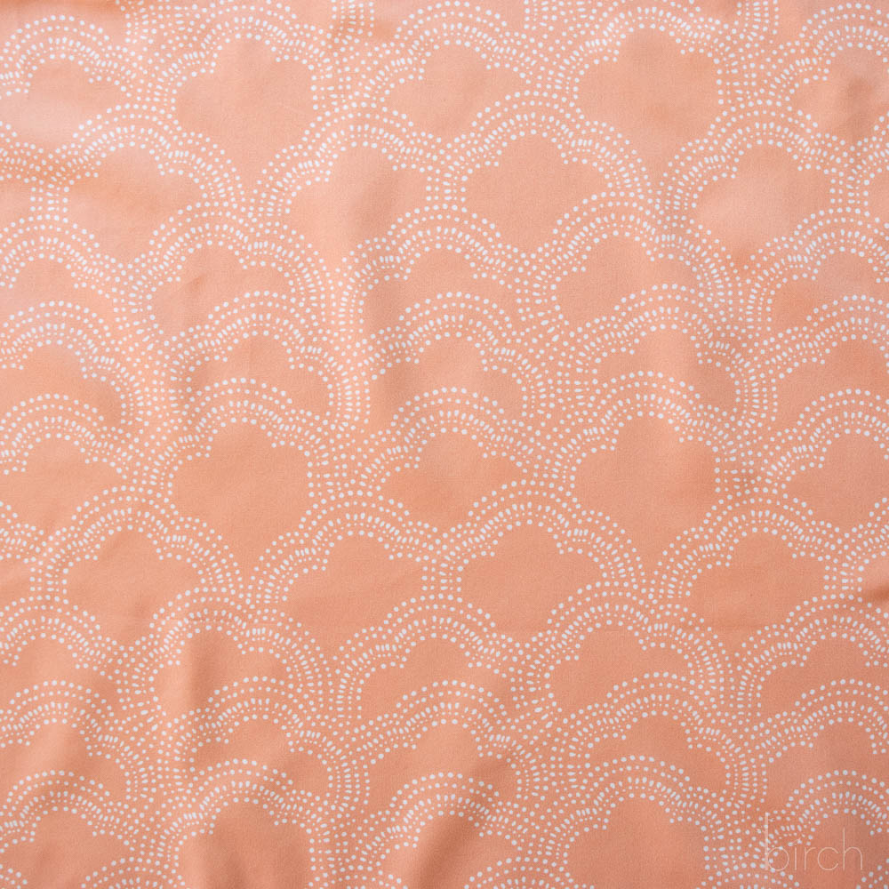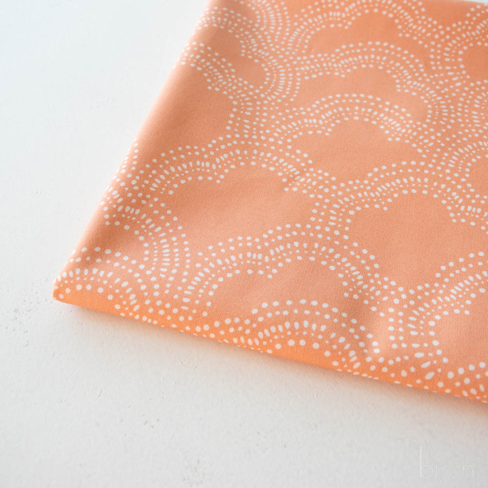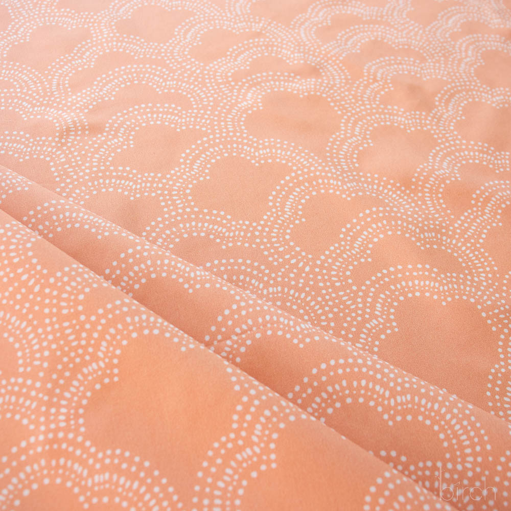 Clouds Apricot is a darling digital print of dotted clouds on an apricot colored backdrop. Perfect for bedding, quilts, and much more, this 100% Organic Cotton Poplin is soft as a cloud and ready whatever you dream up for it.