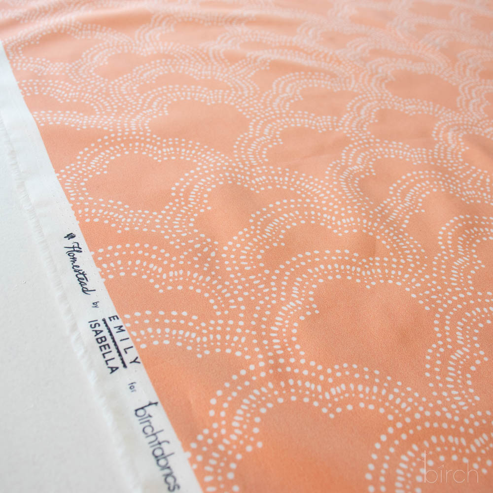 PRE-ORDER NOW, Clouds Apricot, Homestead by Emily Isabella for Birch Organic Fabrics is available for Pickup.