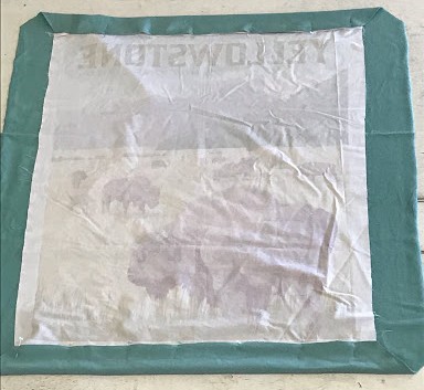 - Trim your panel to 36” x 44” and cut your backing fabric down to measure just 5” inches over each side, so 46” x 54”.